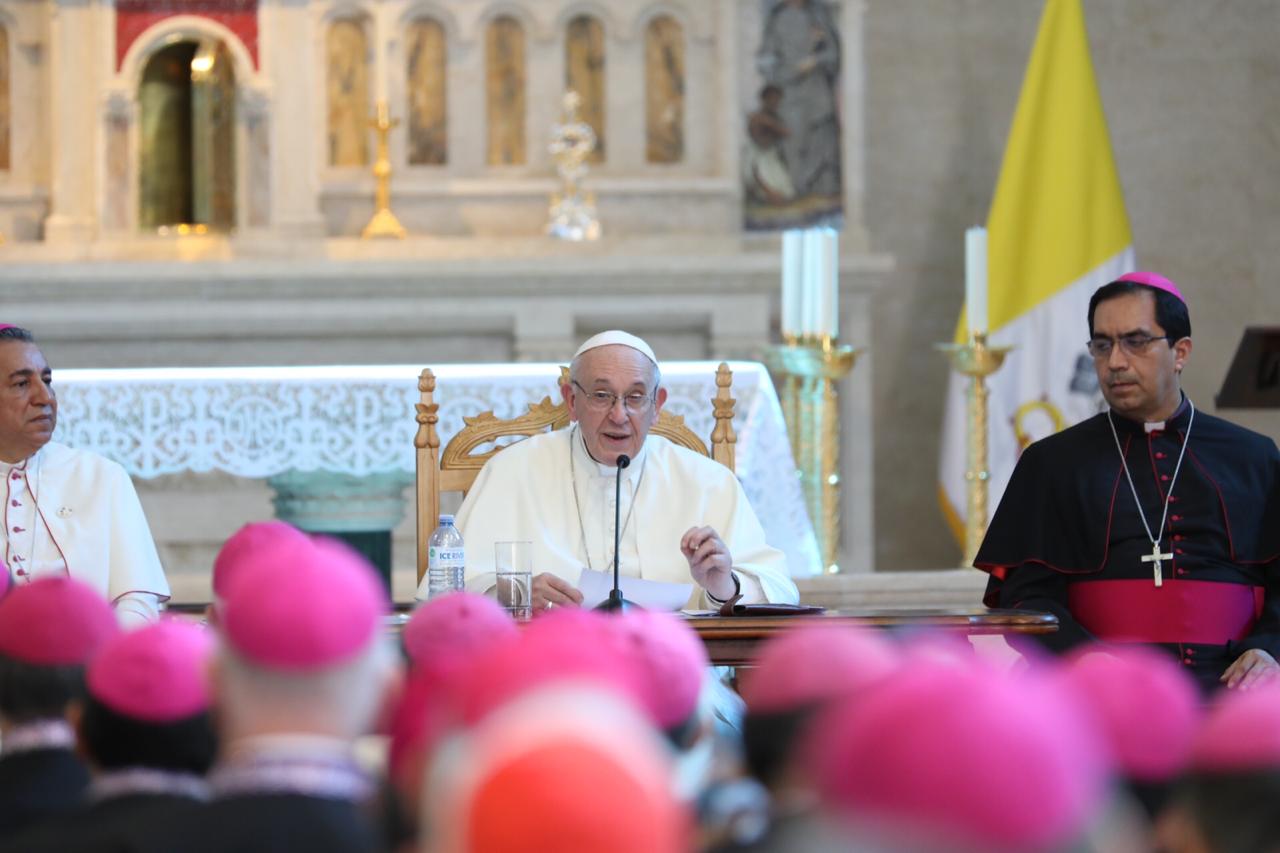 Francisco también indicó a los obispos que es necesario llevar en las entrañas la kénosis de Cristo, «no tengamos miedo de tocar y de acercarnos a las heridas de nuestra gente, que también son nuestras heridas, y esto hacerlo al estilo del Señor. El pastor no puede estar lejos del sufrimiento de su pueblo; es más, podríamos decir que el corazón del pastor se mide por su capacidad de dejarse conmover frente a tantas vidas dolidas y amenazadas».