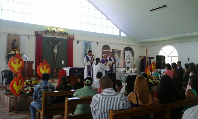 La celebración de la Eucaristía fue presidida por nuestro obispo Mons. Fray Gabriel Enrique Montero Umaña y concelebrada por el Pbro. Enrique Ureña párroco de la comunidad y el Pbro. Roberto Corrales Zamora quien fuera hace ya más de una década. En la homilía, Mons. Montero animó a los jóvenes para que se cuiden y no abandonen la fe y al pueblo en general le hizo un llamado a no juzgar.